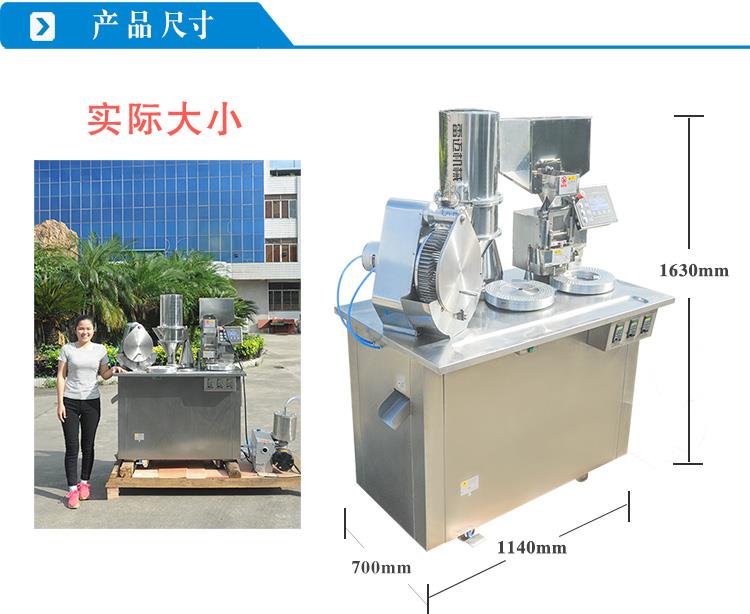 3.充填劑量準確,操作方便,機身及工作台麵采用不鏽鋼製造,產品符合規定的GMP要求。適用於粉狀、顆粒狀的藥品及保健品的膠囊充填。