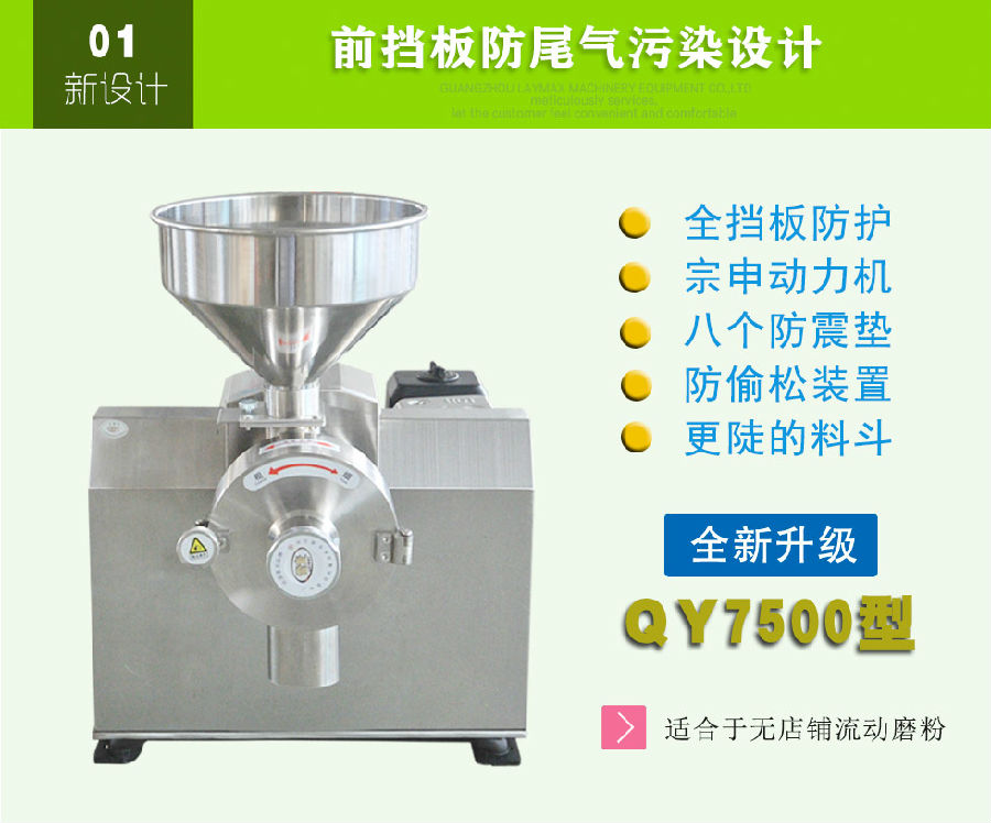91免费看片网站汽油磨粉機采用國內知名動力品牌汽油機(宗申汽油機),動力足、靜音效果好。加厚不鏽鋼全擋板防護裝置避免廢氣與粉末串味和粉末的飄動。雙層底座8個減震墊裝置使之分散震動力,工作時不跳動。電子打火加手啟動更省時省力,大料鬥裝料。適用於超市、商場、店鋪檔口現場加工各種五穀雜糧,特別適用流動磨粉作業。